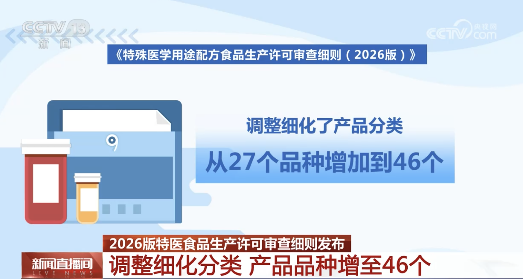 2026版特醫(yī)食品生產(chǎn)許可審查細(xì)則發(fā)布 調(diào)整細(xì)化分類 產(chǎn)品品種增至46個