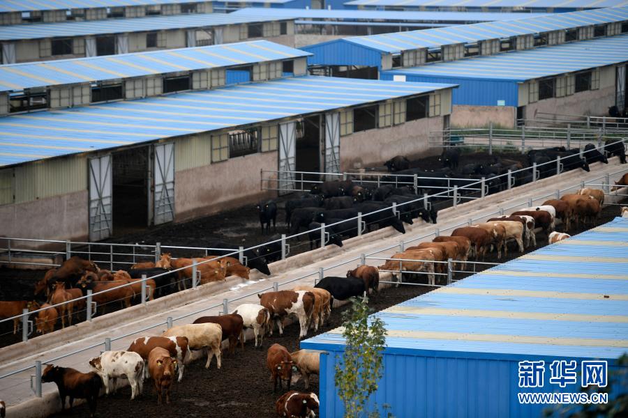 這是2018年8月17日拍攝的寧夏銀川市永寧縣閩寧鎮(zhèn)原隆村肉牛托管養(yǎng)殖基地。新華社記者 王鵬 攝