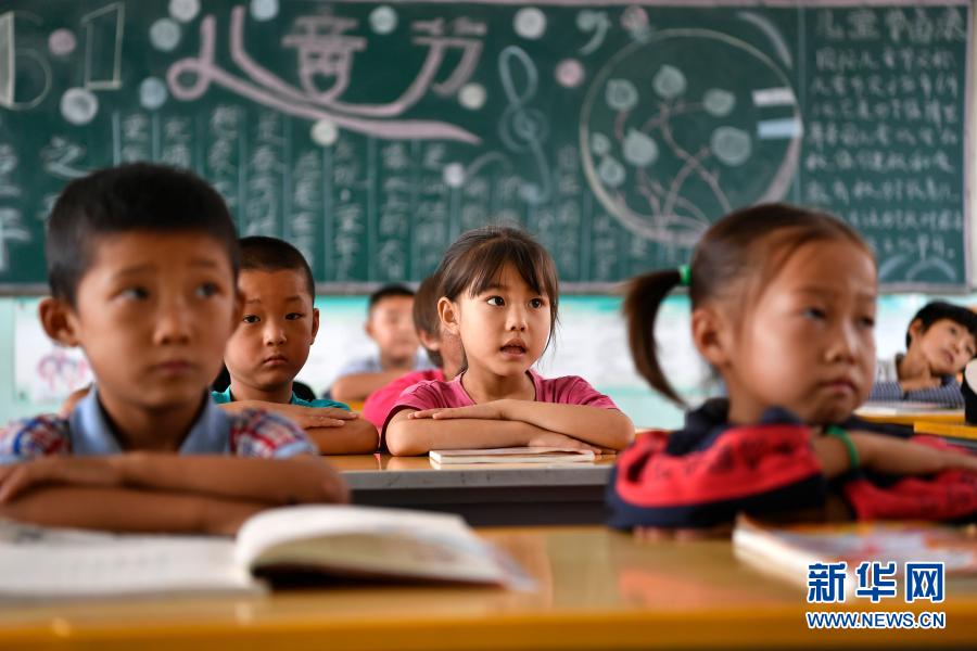 在寧夏銀川市永寧縣閩寧鎮(zhèn)原隆村原隆小學,一年級的孩子們在上課(2019年9月3日攝)。新華社記者 王鵬 攝