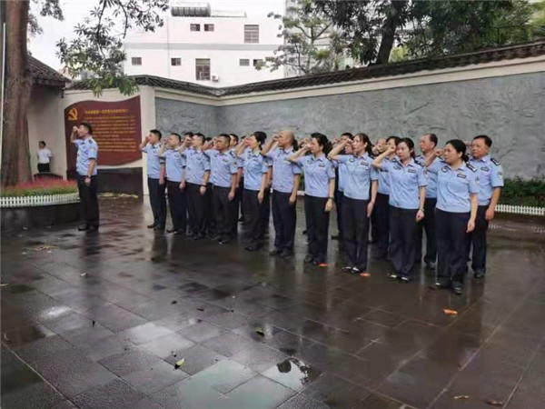 “本次活動(dòng)以黨史學(xué)習(xí)教育為契機(jī),讓廣大民警接受黨性洗禮,傳承先烈遺志,為新時(shí)代移民管理事業(yè)貢獻(xiàn)自己的力量,以優(yōu)異成績(jī)向建黨100周年獻(xiàn)禮!”6月24日下午,在參觀中共瓊崖一大會(huì)址舊址中,??诔鋈刖尺叿罊z查總站秀英邊檢站站長(zhǎng)吳峰對(duì)民警介紹道。