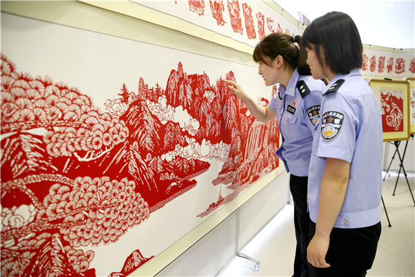 6月29日,山東出入境邊檢總站黃島出入境邊防檢查站舉辦“紅心永向黨”——慶祝建黨100周年剪紙展?!?6個民族大團結(jié)》《不忘初心 牢記使命》《光輝歷程》等近百幅作品構(gòu)圖精美、立意鮮明,映射出創(chuàng)作者對黨和祖國的熱愛。