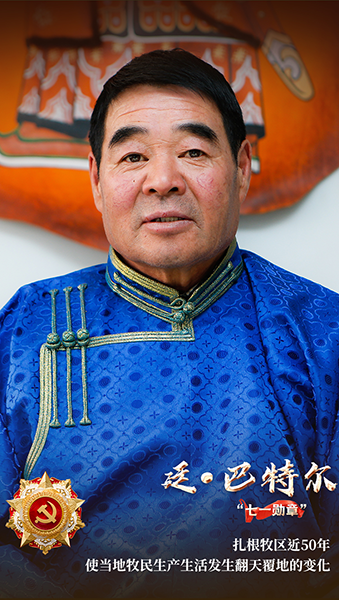 66歲的廷·巴特爾跟草原和牧民打了大半輩子交道。上周,他在人民大會(huì)堂金色大廳領(lǐng)獎(jiǎng)臺(tái),戴上了代表黨內(nèi)最高榮譽(yù)的“七一勛章”。