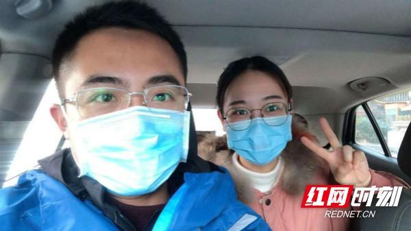 鄭能量(左)接送醫(yī)護(hù)人員上下班時的合影。