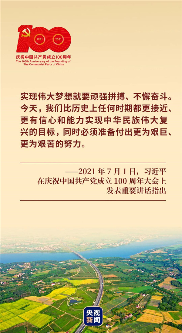 展望中華民族偉大復(fù)興,中國(guó)共產(chǎn)黨將繼續(xù)不屈不撓、一往無(wú)前,引領(lǐng)“中國(guó)號(hào)”巨輪向著夢(mèng)想劈波斬浪。