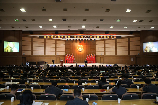 報告會還邀請了“老法院人”代表吳政祥講優(yōu)良傳統(tǒng)。吳政祥以生動的故事、質(zhì)樸的話語講述了他在湖南省法院審判一線不忘初心、牢記使命的奮斗歷程。他勉勵青年干警要樹立遠(yuǎn)大理想和抱負(fù),練就健康體魄,珍愛自己的職業(yè)、榮譽(yù)和家庭,珍惜國家和人民賦予的審判執(zhí)行權(quán)力,為湖南法院審判執(zhí)行事業(yè)高質(zhì)量發(fā)展貢獻(xiàn)力量,成為忠誠干凈擔(dān)當(dāng)?shù)暮戏ㄔ鸿F軍中的一員。