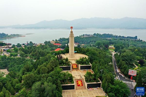 這是6月13日拍攝的河北省平山縣西柏坡紀(jì)念塔(無(wú)人機(jī)照片)。 新華社記者 牟宇 攝
