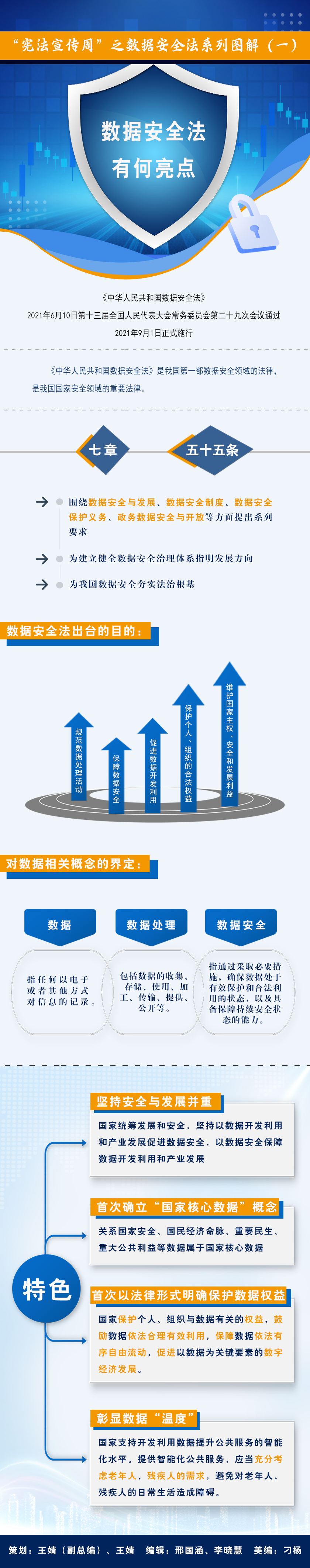值此第四個(gè)“憲法宣傳周”之際,法制網(wǎng)將為您解讀今年9月1日起施行的《中華人民共和國(guó)數(shù)據(jù)安全法》——這部法律的亮點(diǎn)是什么?它是如何支持促進(jìn)數(shù)據(jù)安全與發(fā)展的?它又彰顯了哪些數(shù)據(jù)“溫度”?這一系列問(wèn)題,都會(huì)在法制網(wǎng)《數(shù)據(jù)安全法圖解(系列)》中找到答案。