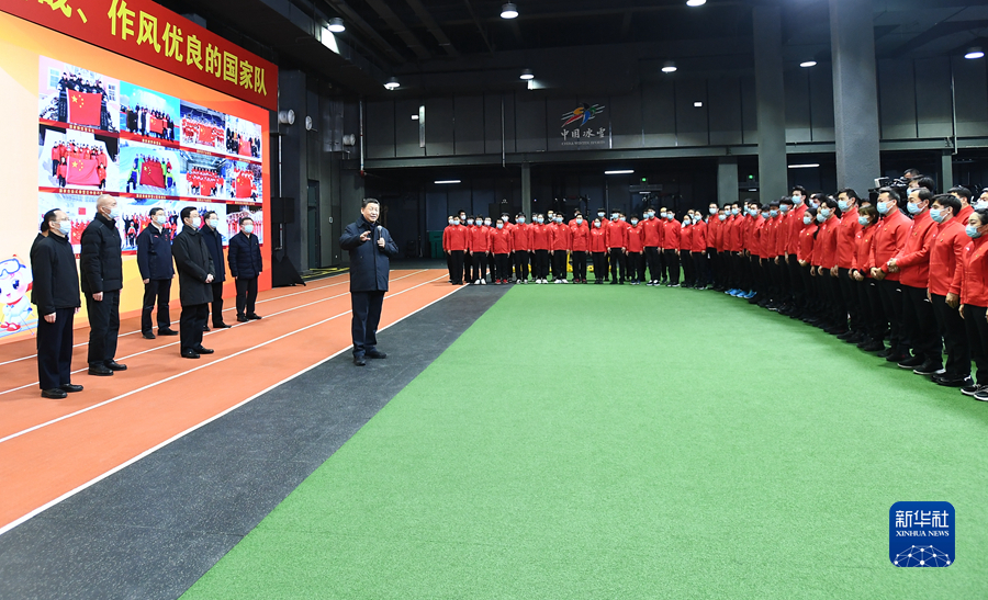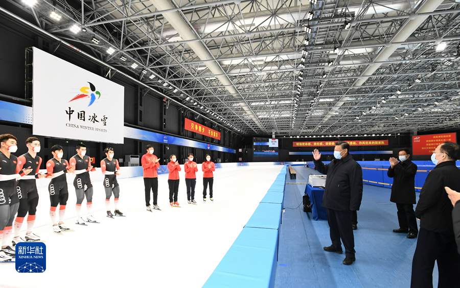 1月4日,中共中央總書記、國(guó)家主席、中央軍委主席習(xí)近平在北京考察2022年冬奧會(huì)、冬殘奧會(huì)籌辦備賽工作。這是4日下午,習(xí)近平在二七廠冰雪項(xiàng)目訓(xùn)練基地速滑館,向參訓(xùn)運(yùn)動(dòng)員、教練員表示慰問。新華社記者 謝環(huán)馳 攝