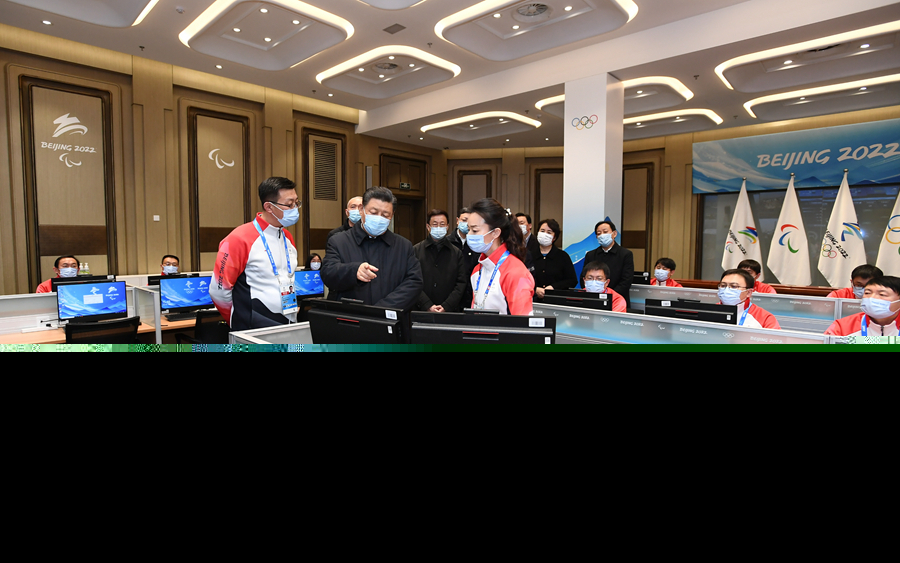 1月4日,中共中央總書記、國(guó)家主席、中央軍委主席習(xí)近平在北京考察2022年冬奧會(huì)、冬殘奧會(huì)籌辦備賽工作。這是4日下午,習(xí)近平在北京冬奧運(yùn)行指揮部調(diào)度中心考察。新華社記者 謝環(huán)馳 攝