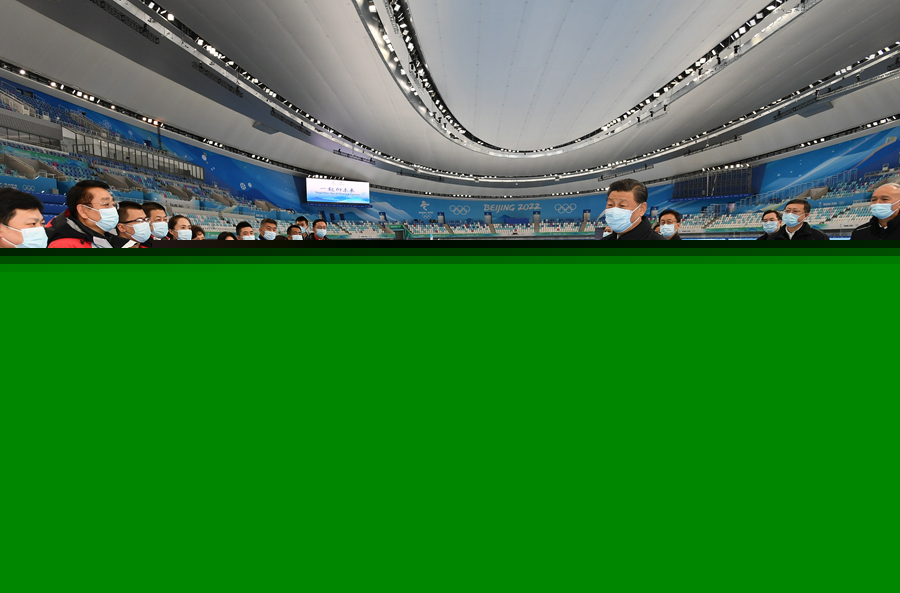 1月4日,中共中央總書記、國(guó)家主席、中央軍委主席習(xí)近平在北京考察2022年冬奧會(huì)、冬殘奧會(huì)籌辦備賽工作。這是4日上午,習(xí)近平在國(guó)家速滑館考察。新華社記者 謝環(huán)馳 攝