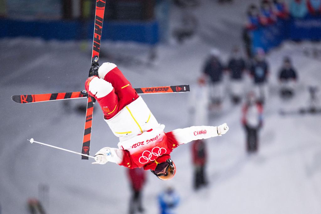 2月3日,中國選手趙洋在北京冬奧會自由式滑雪男子雪上技巧資格賽第1輪比賽中。新華社記者 肖藝九 攝