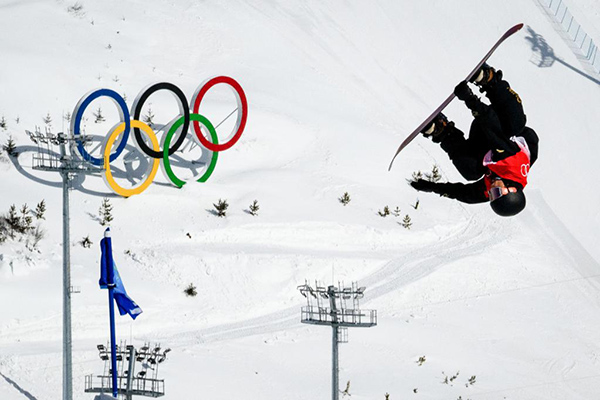 2月7日,中國(guó)選手蘇翊鳴奪得單板滑雪男子坡面障礙技巧銀牌。新華社記者肖藝九攝