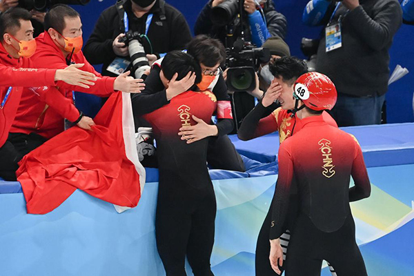 2月7日,在首都體育館舉行的北京2022年冬奧會(huì)短道速滑男子1000米決賽中,中國(guó)選手任子威奪得冠軍。新華社記者李尕?cái)z