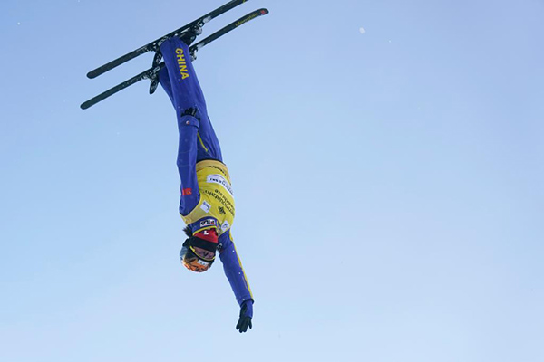 1月12日,徐夢桃在美國帕克城舉行的自由式滑雪世界杯女子空中技巧比賽中。新華社/美聯(lián)
