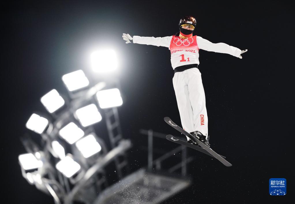 2月10日,中國隊選手徐夢桃在比賽中。當日,北京2022年冬奧會自由式滑雪空中技巧混合團體決賽在張家口賽區(qū)舉行。新華社記者 吳壯 攝