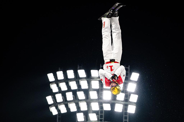 2月10日,中國隊(duì)選手賈宗洋在北京冬奧會自由式滑雪空中技巧混合團(tuán)體決賽比賽中。新華社記者肖藝九攝