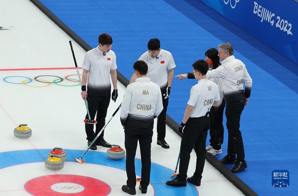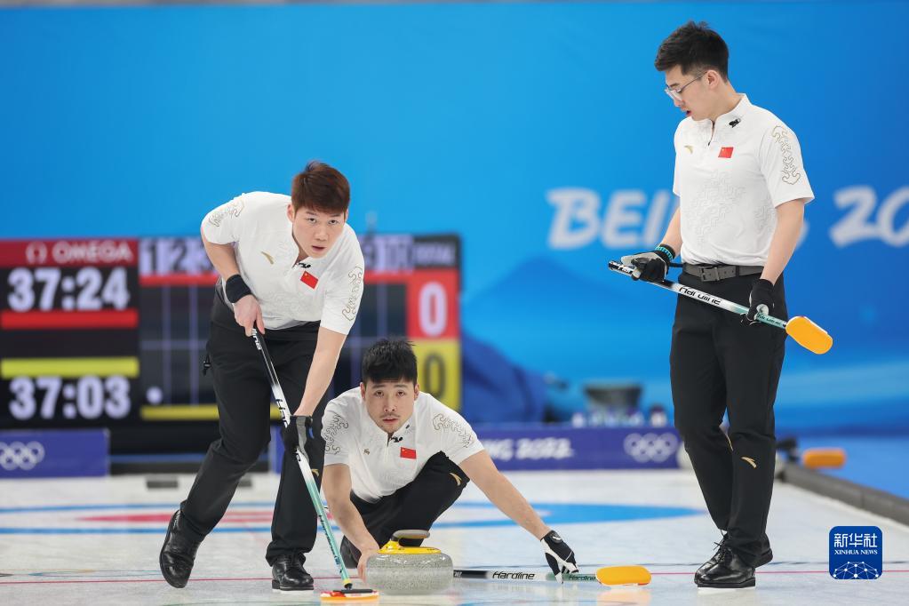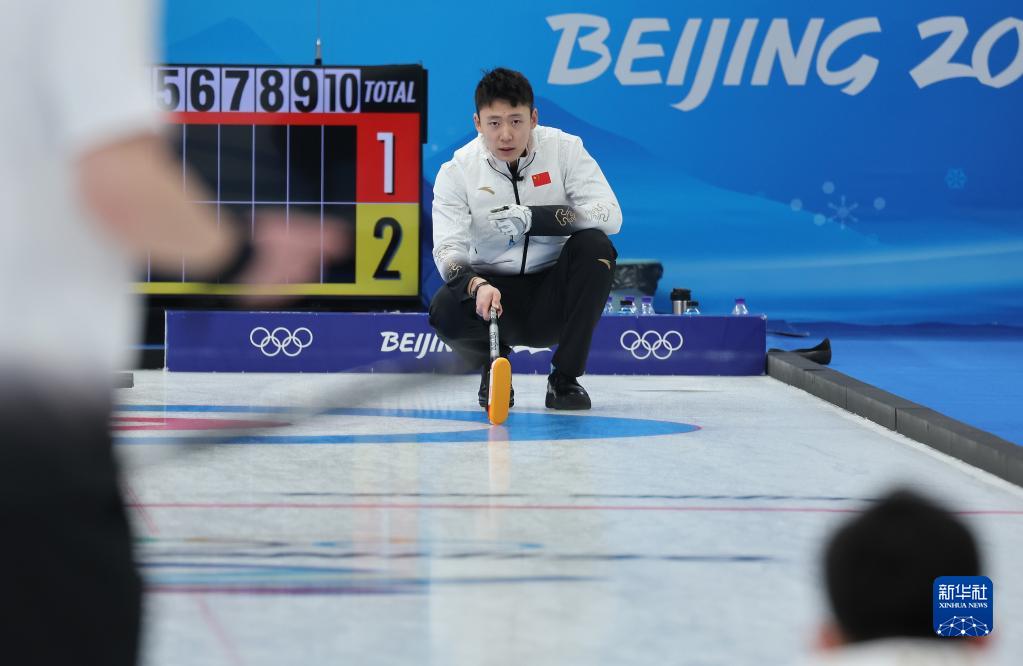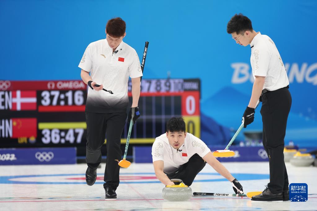 當(dāng)日,在北京國家游泳中心“冰立方”舉行的北京2022年冬奧會(huì)冰壺男子循環(huán)賽中,中國隊(duì)以5比4戰(zhàn)勝丹麥隊(duì)。