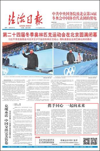 北京冬奧會為中國發(fā)展提供了新機遇,也為世界貢獻了更多可能。“一起向未來”是北京冬奧會的愿景,簡潔凝練的表述中蘊含著博大智慧和深厚情懷,發(fā)出了構建人類命運共同體的中國倡議。各國運動員在賽場上,呈現給世界的不僅有挑戰(zhàn)自我、突破極限的拼搏精神,還有相互支持、彼此成就的美好友誼。在對手比賽失利后主動安慰、成功后真誠擁抱祝?!荒荒恍氖窒噙B、情意相牽的動人場景,在瞬間定格成為永恒。北京冬奧會以全球共通的體育語言和體育精神,積極踐行了“更快、更高、更強——更團結”的奧林匹克格言,生動地詮釋著人類命運共同體的理念,向全世界傳遞出明確信息:奧林匹克精神是人類團結的燈塔,任何國家、民族、宗教的人民都可以超越分歧,實現團結與合作。