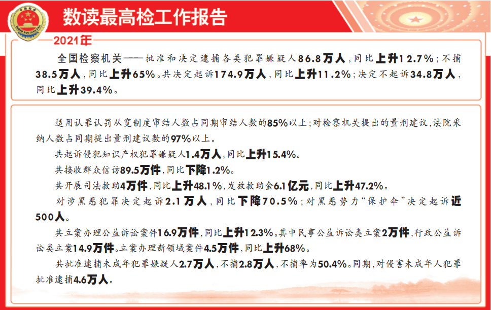 積跬步以至千里。2021年,全國檢察機關(guān)通過能動履職將司法理念與百姓身邊的案件相結(jié)合,直觀釋法說理,促進(jìn)社會公眾理解、遵守法律,提升法治意識,共辦理各類案件363.7萬件,同比上升20.9%。一個個具體案件中,檢察機關(guān)將政治建設(shè)、業(yè)務(wù)建設(shè)融為一體,“見微知著”挖掘深層次矛盾、苗頭性傾向性問題,用匠心推進(jìn)訴源治理,助力國家治理體系和治理能力現(xiàn)代化。