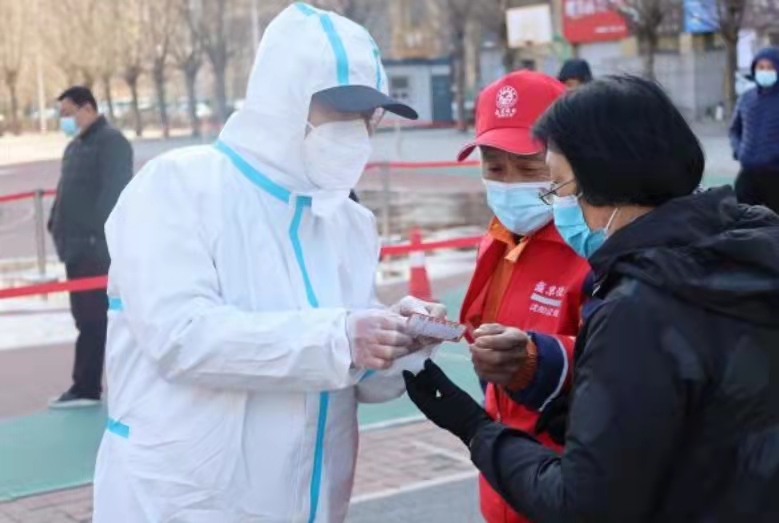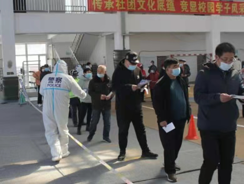 為及時(shí)有效發(fā)現(xiàn)和控制傳染源,保障人民群眾生命安全和身體健康,2022年3月17日,遼寧省沈陽市啟動(dòng)為期兩天的全民核酸檢測(cè)。為了確保核酸檢測(cè)有序進(jìn)行,沈陽市公安局緊急抽調(diào)市、區(qū)兩級(jí)公安機(jī)關(guān)警力,迅速組織9828名公安民警、輔警及7981名“盛京使者”志愿者投入核酸檢測(cè)安保工作。他們堅(jiān)守在全市兩千余個(gè)核酸檢測(cè)采樣點(diǎn),在乍暖還寒的初春給沈城人民送去溫暖和平安。