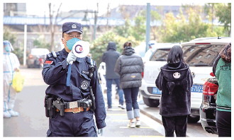 “鄰居們,起床做核酸檢測嘍!”每天一早,海州公安分局巡特警大隊一級警長朱華勇都會拎著喇叭在樓下喊起來。不僅如此,朱華勇還針對拒絕核酸檢測的重點人員開展上門訓誡,妥善處置各類突發(fā)事件,確保核酸采樣工作有序進行。
