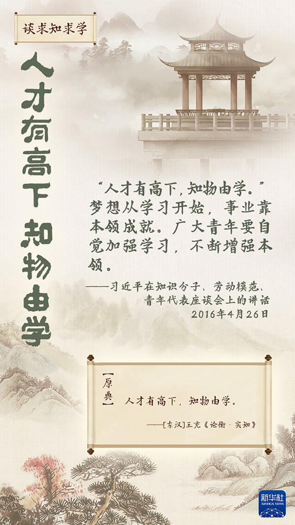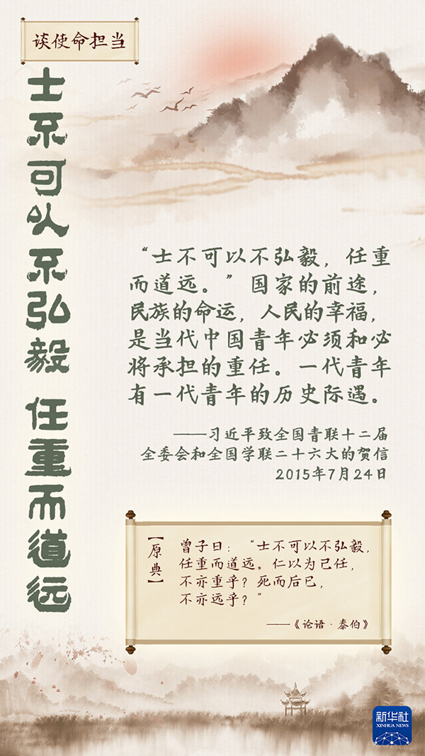 黨的十八大以來,習(xí)近平總書記經(jīng)常引用古語勉勵(lì)青年,與他們談人生理想、談求知求學(xué)、談使命擔(dān)當(dāng)。