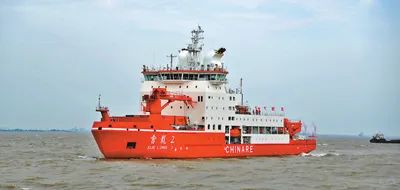 “雪龍2”號(hào)破冰船正在航行中。