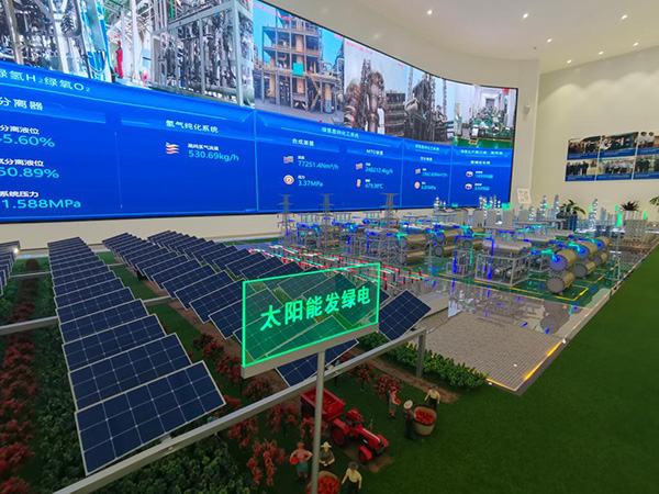 寧夏寶豐能源集團(tuán)太陽(yáng)能電解水制氫項(xiàng)目沙盤(pán)。(新華社記者靳赫攝)