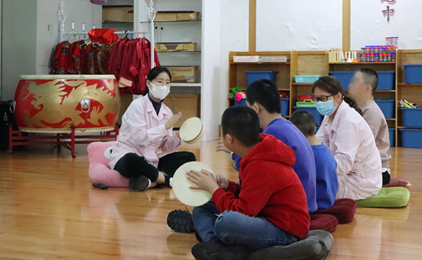 濰坊市兒童福利院里的孩子在上音樂課。新華社記者張力元攝