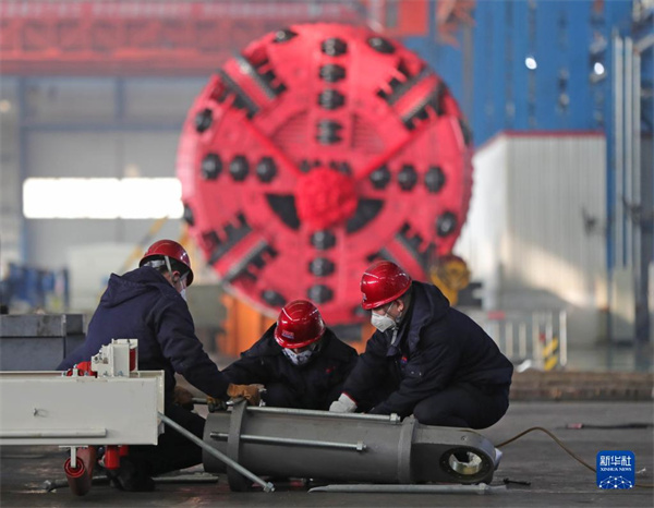 工人在沈陽北方重工集團有限公司盾構(gòu)機分廠車間工作(2020年2月10日攝)。 新華社記者 楊青 攝
