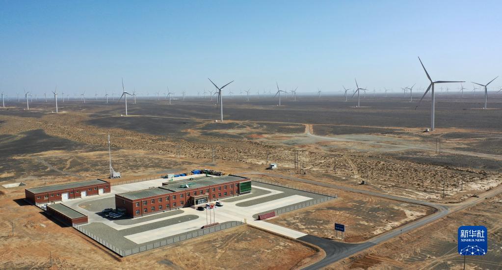 這是2022年4月16日拍攝的甘肅省酒泉市境內(nèi)的風(fēng)電基地(無(wú)人機(jī)照片)。新華社記者 陳斌 攝