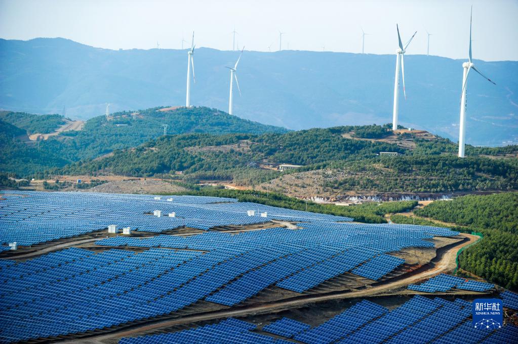 這是貴州省威寧縣平箐光伏電站和大海子風(fēng)電場(chǎng)(2018年3月13日攝)。 新華社記者 楊文斌 攝