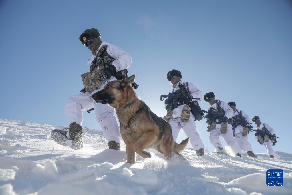 駐守帕米爾高原的新疆喀什軍分區(qū)某邊防團(tuán)托克滿(mǎn)蘇邊防連官兵按計(jì)劃對(duì)海拔5100米的山口實(shí)施例行巡邏(2021年2月11日攝)。新華社發(fā)(姬文志 攝)