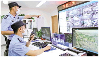 在南京市公安局高淳分局淳溪派出所綜合指揮室,民警通過(guò)一體化作戰(zhàn)平臺(tái)現(xiàn)場(chǎng)調(diào)度指揮社會(huì)面突發(fā)案事件處置。 本報(bào)通訊員 劉蕓 攝