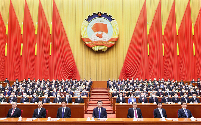 受全國人大常委會委托,栗戰(zhàn)書委員長向大會報告全國人大常委會工作……